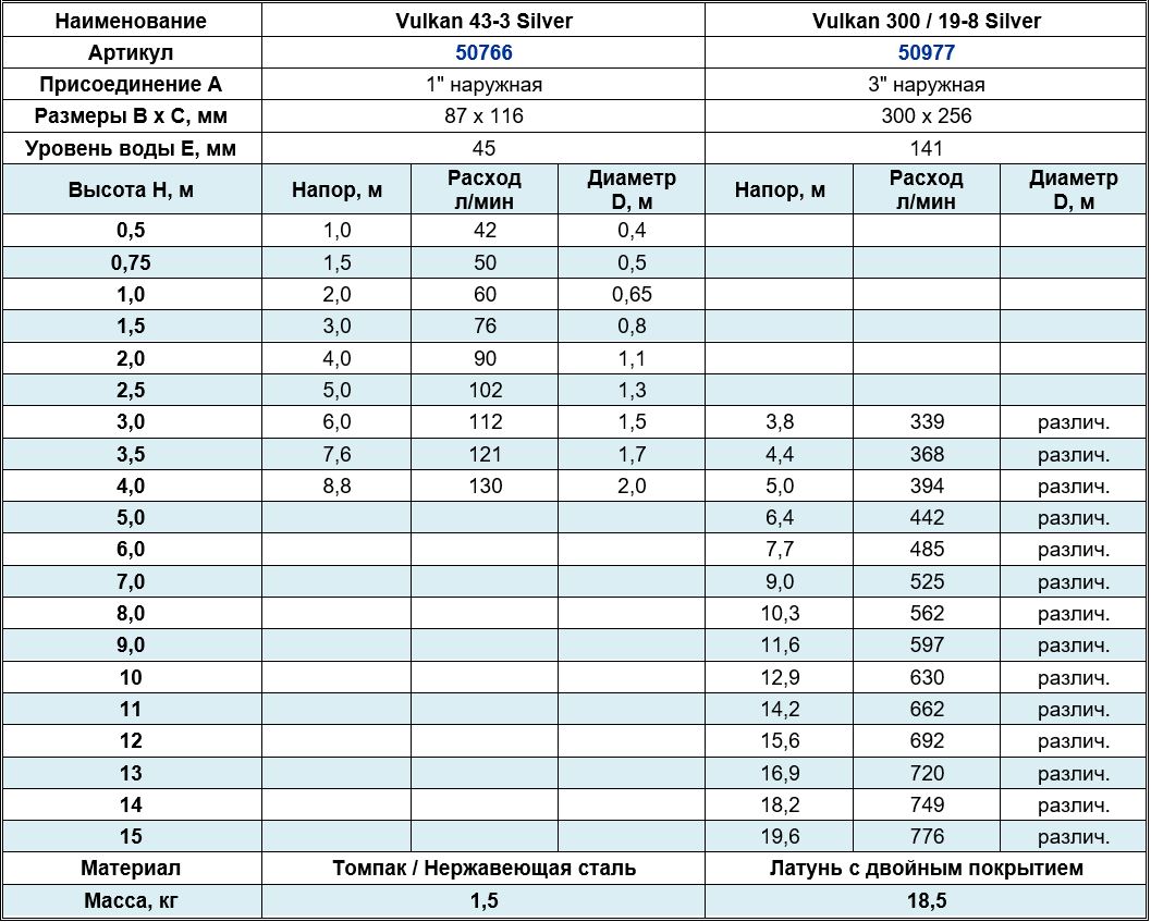 Насадки серии Vulkan создают водную картину, где множество струй взлетают вверх и падают с разных уровней. Эти модели особенно удобны в эксплуатации, так как их чистка не требует больших усилий. С помощью насадок этой линейки можно создать как небольшой фонтан, так и внушительное водное сооружение.
